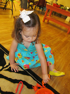Lily loved the activities a lot more than having her picture taken. What else is new?? Brinley also loved rolling around on the carpet and exploring new sensory toys. She also enjoyed her first taste of a donut, shocker! I wish they had things like this more often for me to take the girls too. I feel like Lily gets so bored with her toys at home. She sat and sorted rubber bugs with plastic picher tongs into colored plates for what seemed like forever. She also loved scooping 100s of pom poms into a bucket, and dumping it back in the sensory bin. I can't really keep stuff like that unattended in my house because of Brinley's desire to put everything in her mouth. I probably need to get a little more creative before I rotate out Lily's old toys with some new ones.